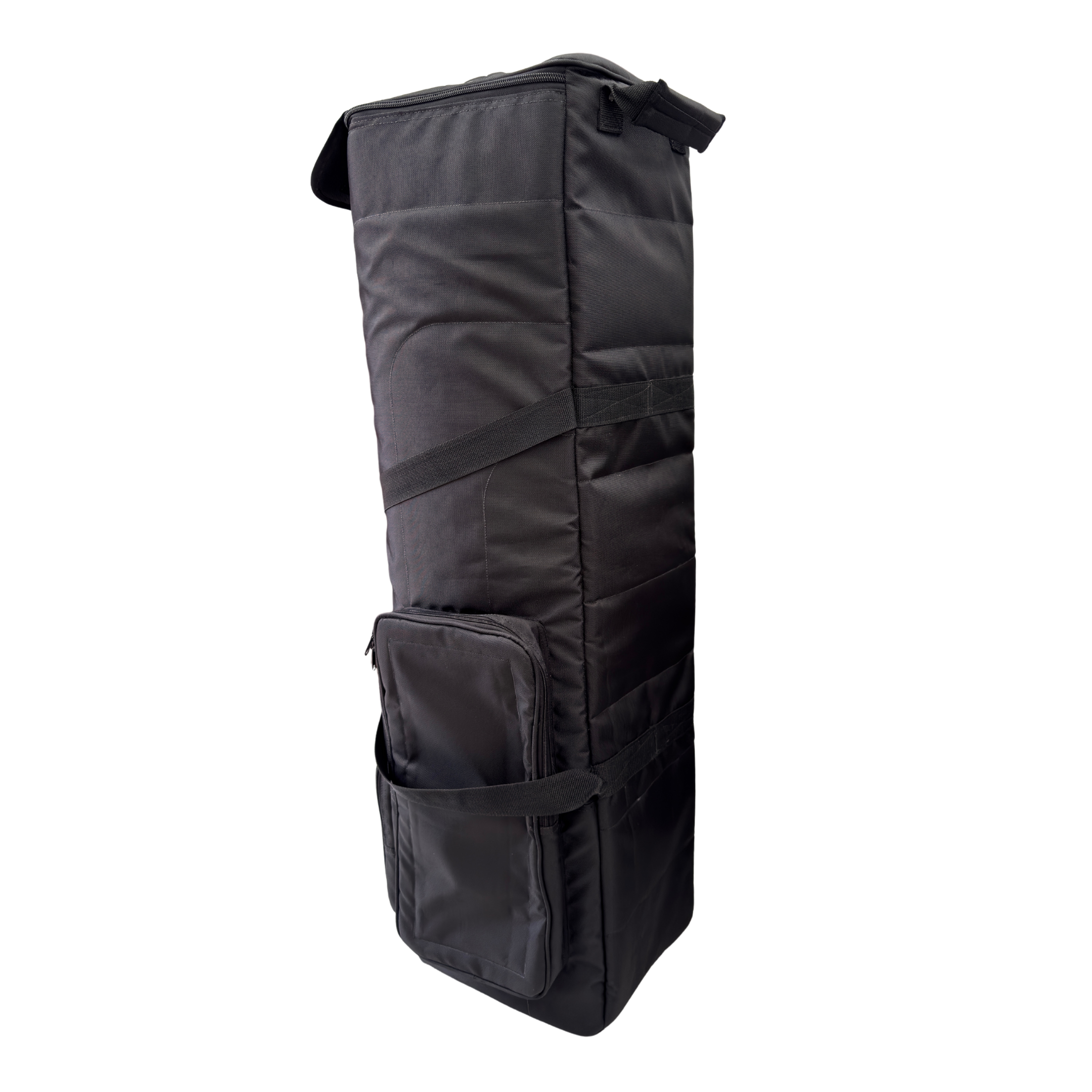 El HR1 incorpora tres bolsillos externos amplios: dos laterales ideales para campanas, jam blocks, pinzas de micrófono, cables o micrófonos, y un bolsillo frontal para accesorios adicionales.